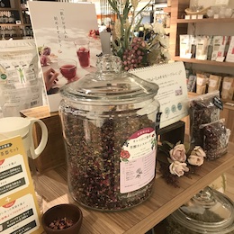 百貨店内に店舗を構える「enherb」は、落ち着いた雰囲気の中でハーブティーの香りが漂う癒しの空間。取材で訪れた店舗では、スタッフがお客様と丁寧に会話しながら、一人ひとりに合った商品を提案していました。