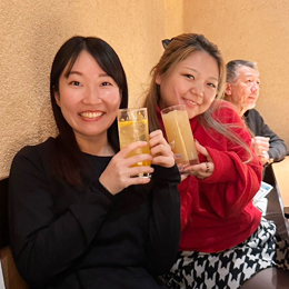 仕事以外のコミュニケーションも大切。定期的にみんなで美味しいものを食べて楽しい時間を過ごしています。