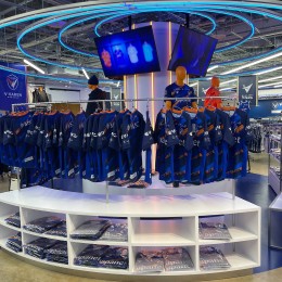 プロ野球5球団の選手のユニフォームやトレーニングウエア、レプリカキャップなどのファングッズを展開。