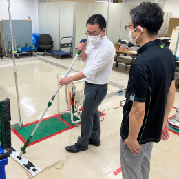 カートや床清掃のロボットなど最新の機材や専用洗剤も積極的に導入し、体に負担がかからない方法を会社全体で取り組んでいます。