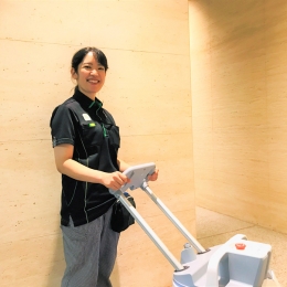 カートや床清掃のロボットなど最新の機材や専用洗剤も積極的に導入し、体に負担がかからない方法を会社全体で取り組んでいます。