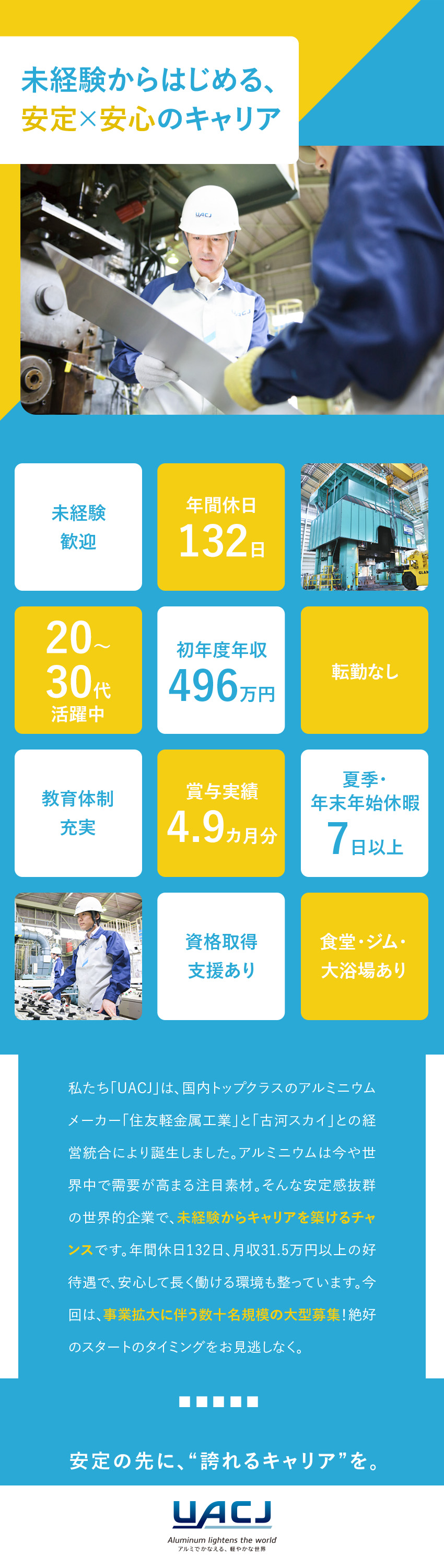 【名古屋/転勤無】生産技術(アルミニウム製品)※プライム上場アルミメーカー/土日祝/年休121日