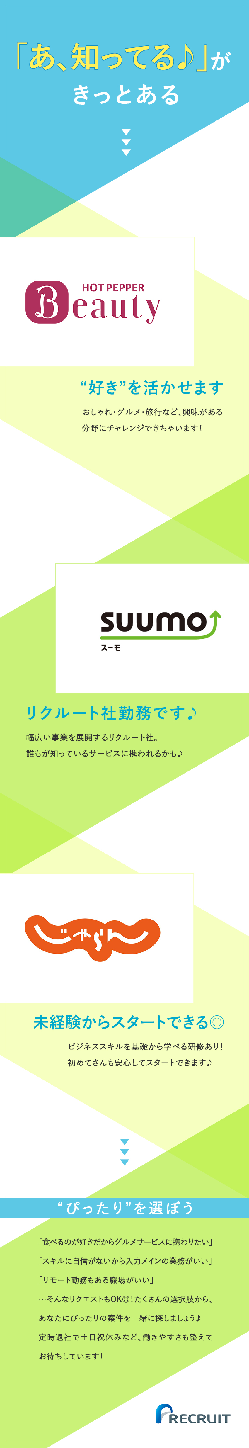ホットペッパー・じゃらん等の事務/おしゃれOK/残業なし