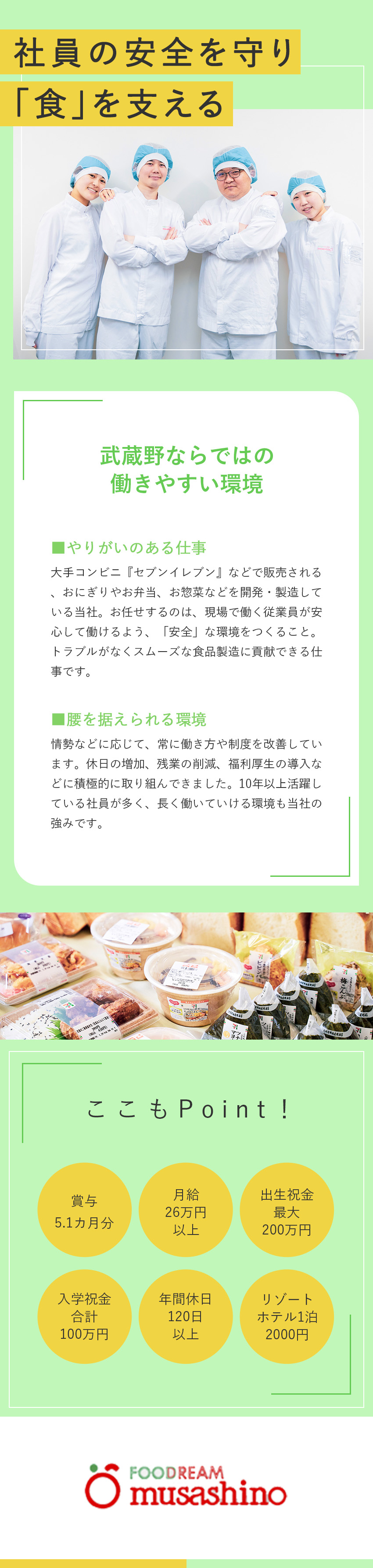食品工場の安全管理/月給26万円以上/賞与5.1カ月