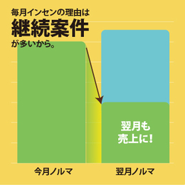 前月の契約もプラスされた状態でインセンティブ支給されるので、他社と違いノルマ達成が圧倒的に楽です。