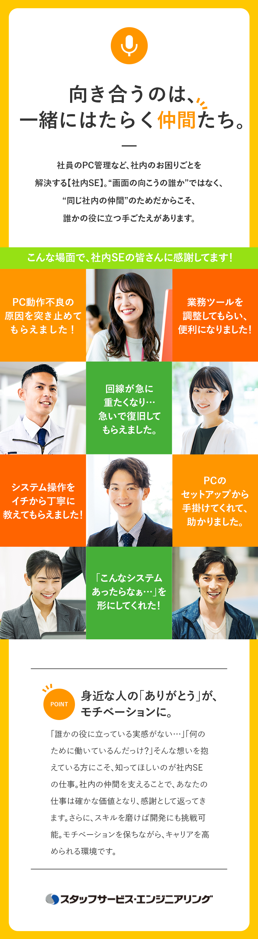これは技術系人材サービス会社として、スタッフサービス・エンジニアリングが最も大切にしていること。