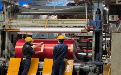 製造した紙を巻き取っています。この後、出荷ができるように準備をしていきます。