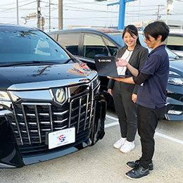 お客様は20~30代が中心で、インターネット(中古車情報サイト)を見て来店される「完全来店型営業」です。