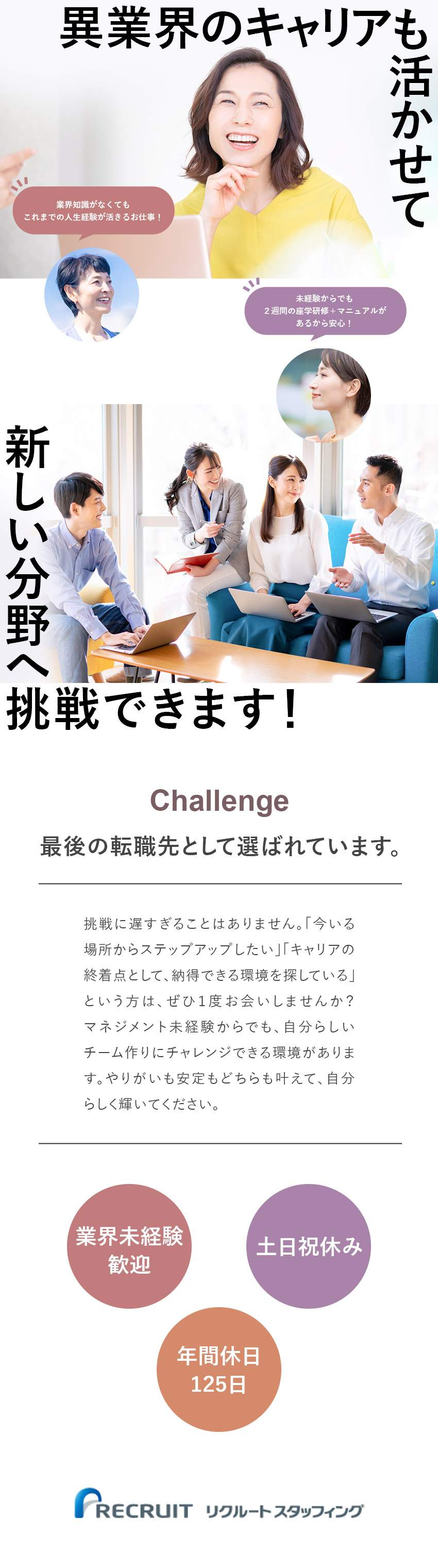 【30~40代活躍中】女性比率70%!一人ひとりのチャレンジを応援する環境です◎