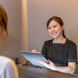 チェックイン・チェックアウトの受付や、お客様のご案内などを通じて、心地よい時間をお届けする仕事です。