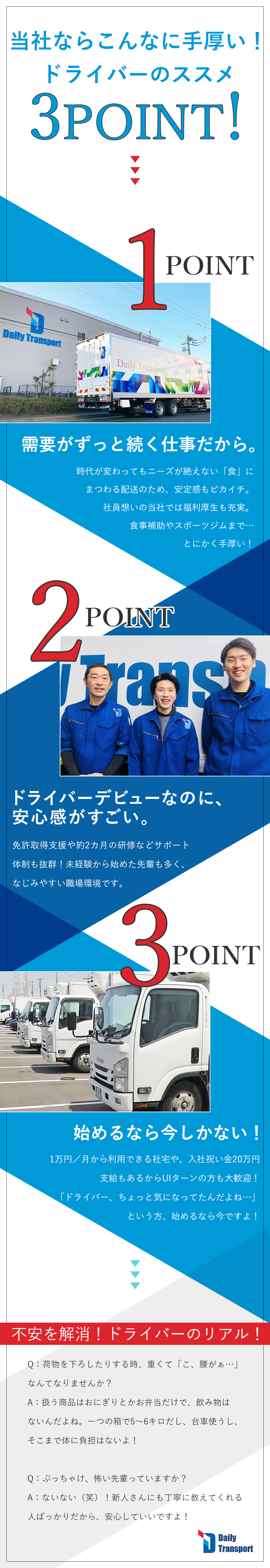 ルート配送ドライバー/免許取得制度あり/入社祝い金20万円!