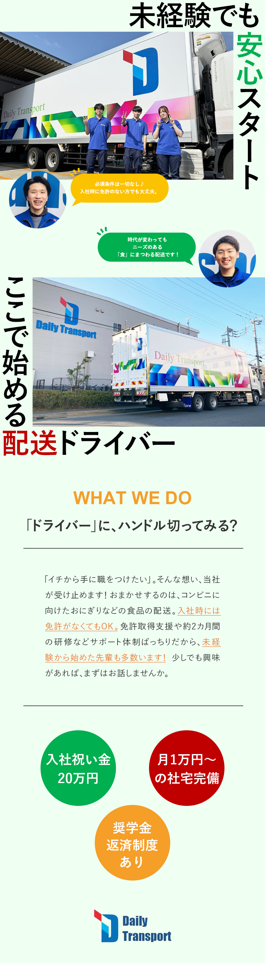 ルート配送ドライバー/免許取得制度あり/入社祝い金20万円!