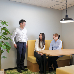 入社後3カ月目まで、人事部による新入社員面談を行っています。悩んでいることや、将来的なビジョンやキャリア形成などを決めていくことができ、会社と一緒に先を見据えて行動に移していくことが可能です。