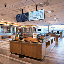 社内には社員食堂も!お昼時は部署や年齢に関係無く、自然とコミュニケーションが生まれています。