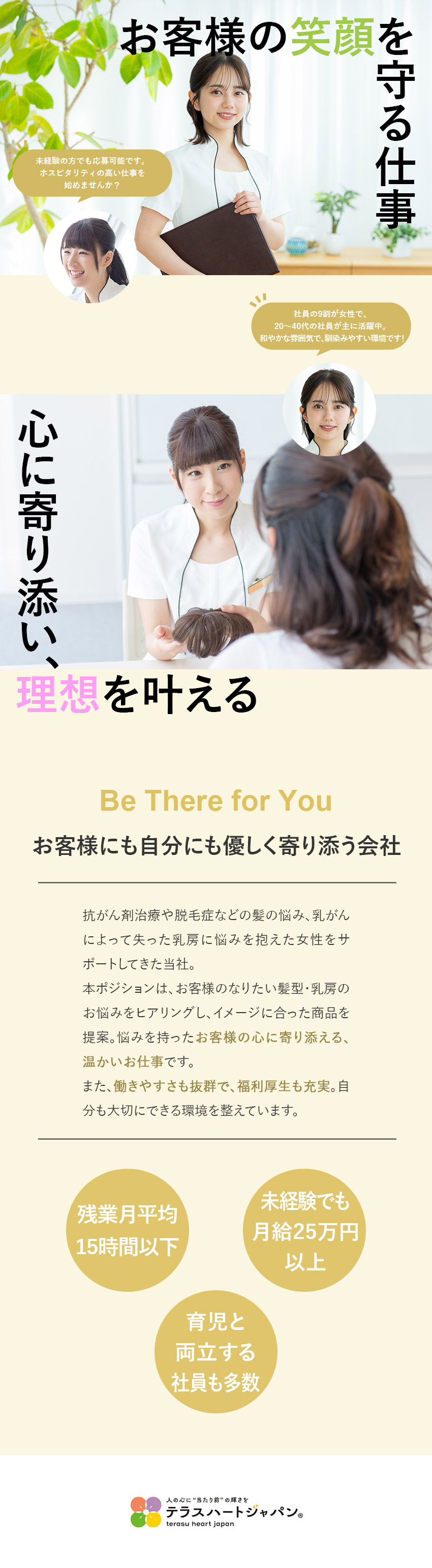 外見ケアカウンセラー/未経験歓迎/月残業15h以下/賞与2回