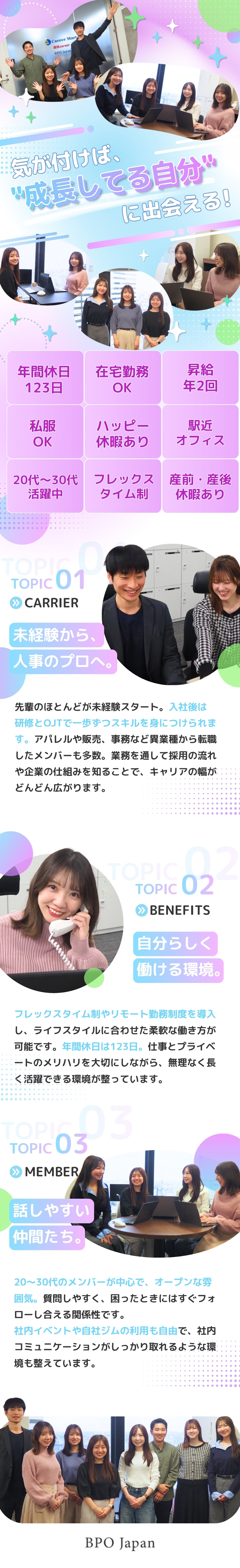 未経験から“人事・採用”デビュー!クライアント様の採用をサポート!大手企業の採用に関わることも!