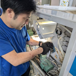 現在、工場で稼働する業務用洗濯機・乾燥機などの機械を点検・整備する「メンテナンススタッフ」を募集中。