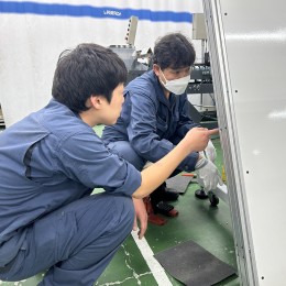 入社後は研修で工具の名前や組み立ての基礎を学び、先輩と一緒にOJTを実施。お客様先に同行しながら、機械の操作や点検を少しずつ覚えていけます。