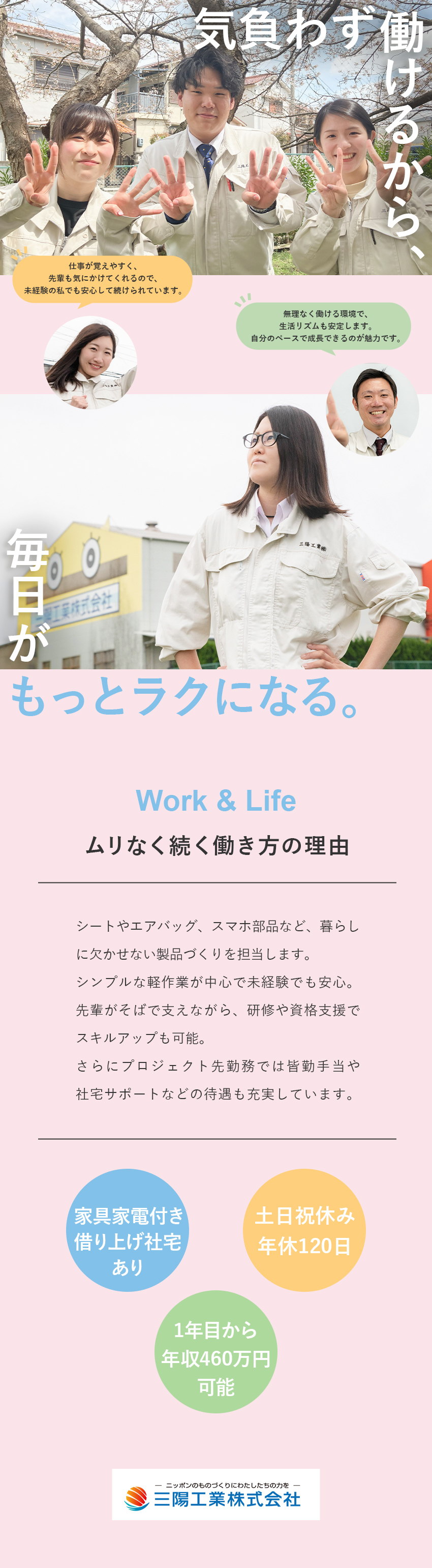 さらに、所属するチームのリーダーが<毎日>作業場所へ様子を伺いにきてくれるため、すぐ相談していただけます。
