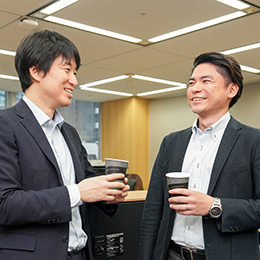 穏やかで話しやすい人柄の代表(左)。社員一人ひとりの意見を大切にし、挑戦を後押ししてくれる存在です。