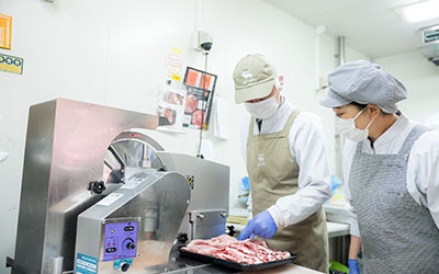 知識がしっかりと身についてきたら、いよいよお肉の加工にチャレンジです!先輩社員の業務を見たり、アシスタントとしてお手伝いしたりと、あなたのできることから少しずつお任せしていきます。