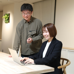 「私も未経験での入社でしたが、独り立ちまではしっかりサポートしてもらえるので不安はありませんでした。建設業界の知識など、専門的なスキルを自然と磨けるのも魅力ですね!」