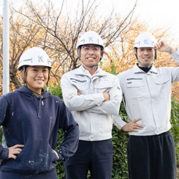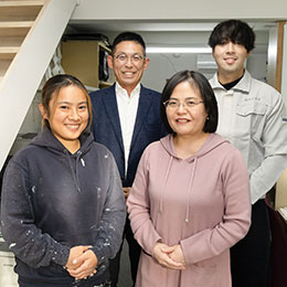 明るく・楽しく・仲良く働く――。これが代表の変わらぬ信条です。当社では年齢も国籍もさまざまな職人たちが互いに助け合い、現場を支え合っています。困ったときは、すぐに社長に相談できる距離の近さも魅力です。