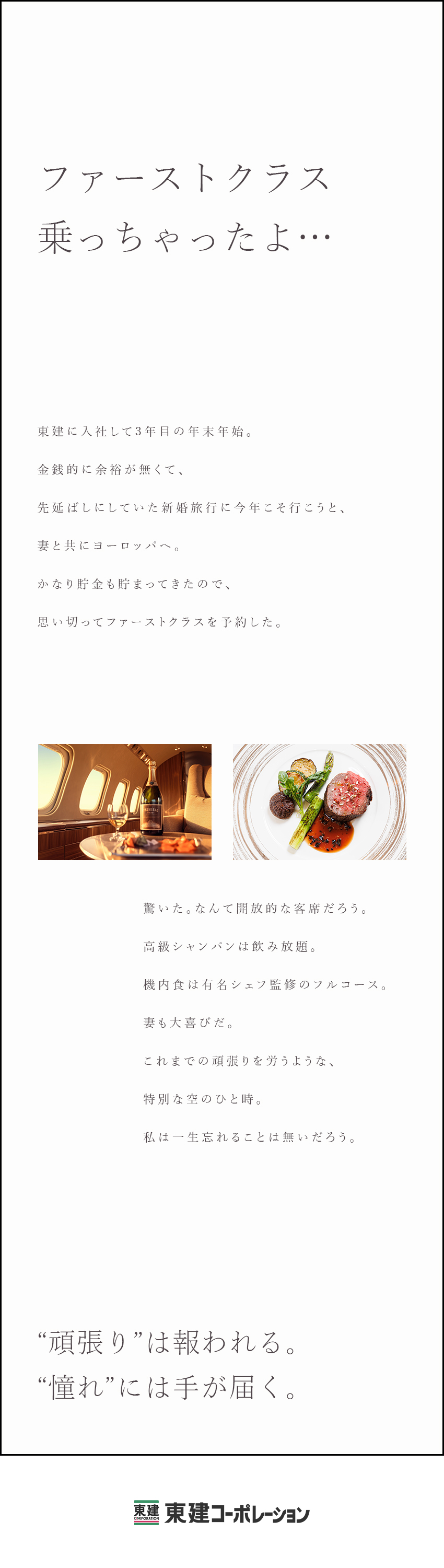 「ファーストクラスで新婚旅行」