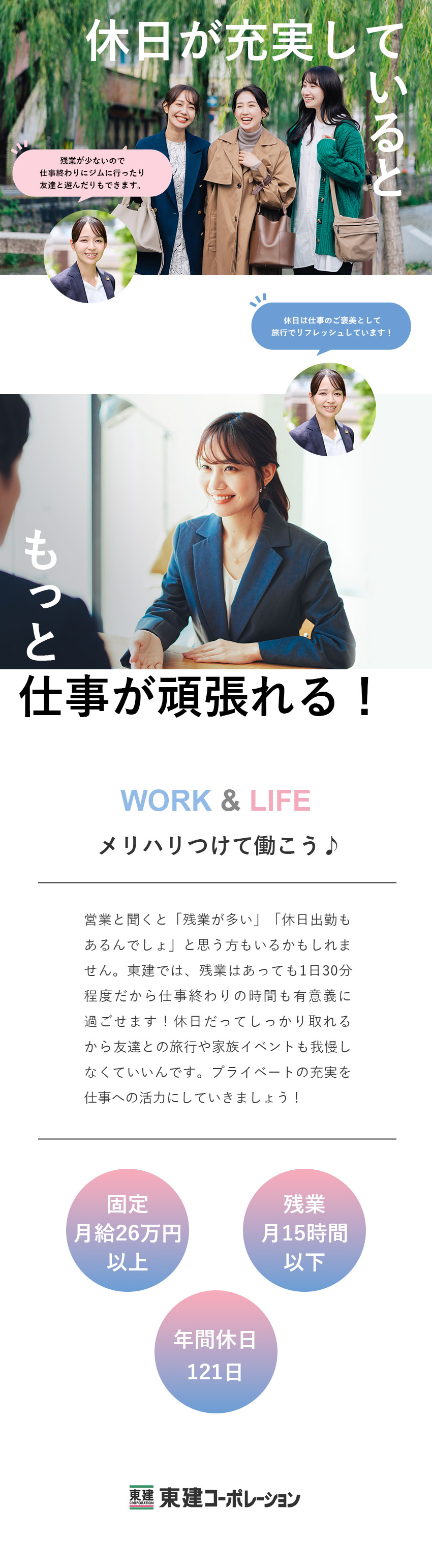 オンもオフも充実できる営業/年休121日/平均年収819万円