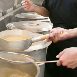 飲食業のやりがいを心から味わえるのは、創業から店内調理にこだわる山岡家ならでは。スープはイチから店舗で丸3日間煮込み続け、新鮮なねぎなどの具材は人の手でカット。チャーシューを紐で縛るのも人の手で行っています。実際、熱烈な山岡家ファンは多く、お客さまからの「美味しい」の声にやりがいを感じられることでしょう。山岡家が掲げる「No.1」ではなく「ONLY ONE」を日々実感できる仕事です。