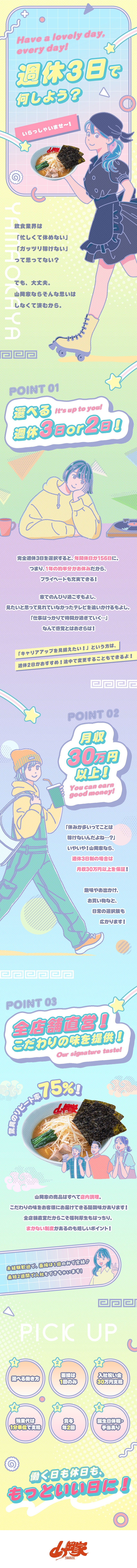 山岡家スタッフ/まかない・社宅有/週休3日可/入社祝30万円