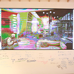 「Hero Egg」の壁には社員の夢や希望が書かれています。”未来を創るおもしろい会社”です