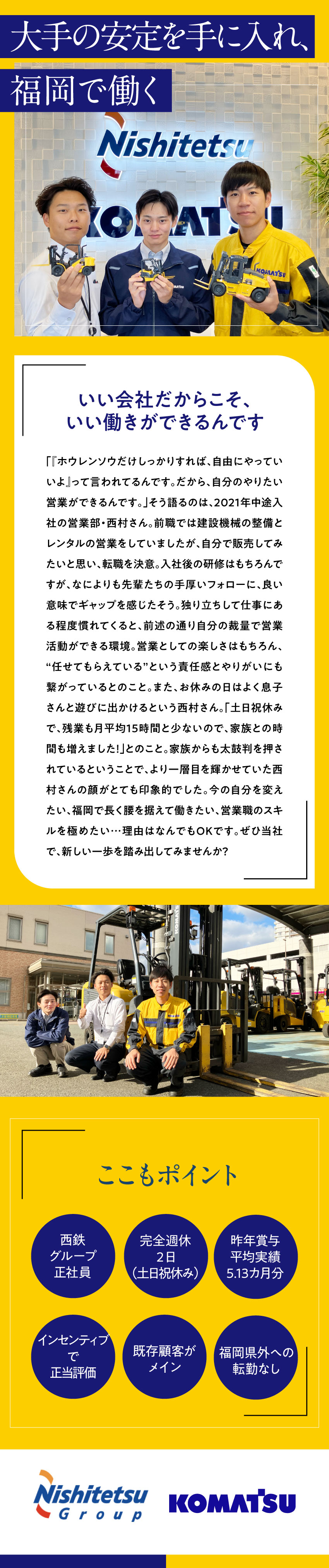 西鉄グループとコマツの盤石な基盤のもと、将来の安定を手に入れられます!