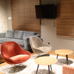 お洒落なフリースペースに、広々としたミーティングルームも完備。