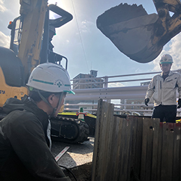 重機の操作や資材の搬入など、現場での作業を担当します。