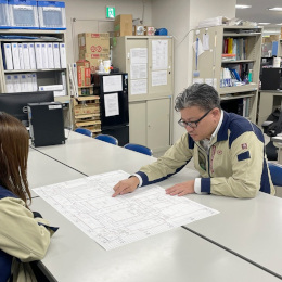 ▼先輩と一緒に現場に行き、業務の流れを覚えます
