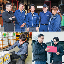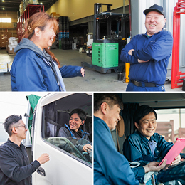一般貨物自動車運送業、引越し業、倉庫業、倉庫内荷役作業請負、自動車整備業、自動車部品販売業