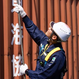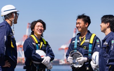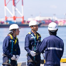 24時間勤務の際、例えば1隻目と2隻目が立て続けに港に着き、動き続けなければならない場合もあります。そんなときは辛さを感じることもあるそう。忙しさから安全面への配慮が欠けてしまうと、大事故に繋がってしまうこともあるため、油断せずに緊張感を持って進めるようにしましょう。もちろん大きな声で声掛けを行うなど、さまざまな工夫を行っておりますが、一人ひとりの意識が大切です。