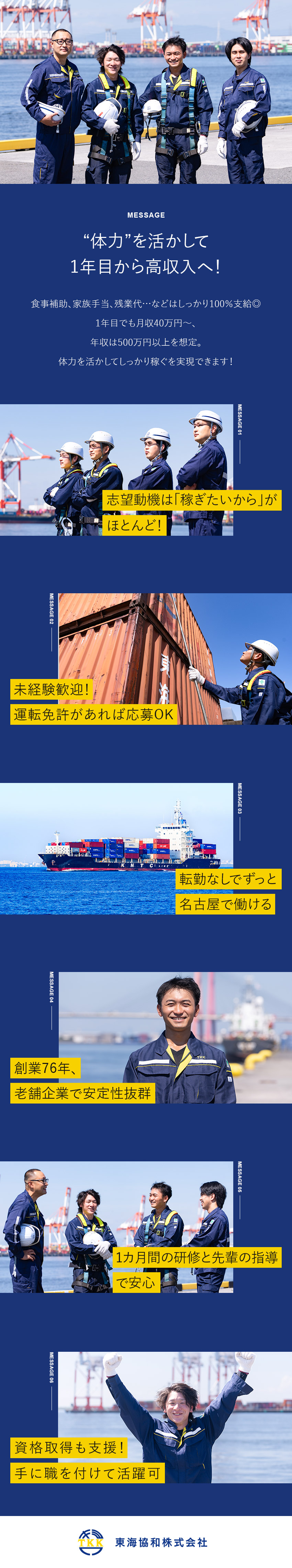 名古屋港で働けるちょっとレアな求人です!転勤もなく、腰を据えて長く働けます。