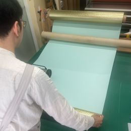 案件の中には大きい壁紙を用意することも。検品作業はここでおこないます。