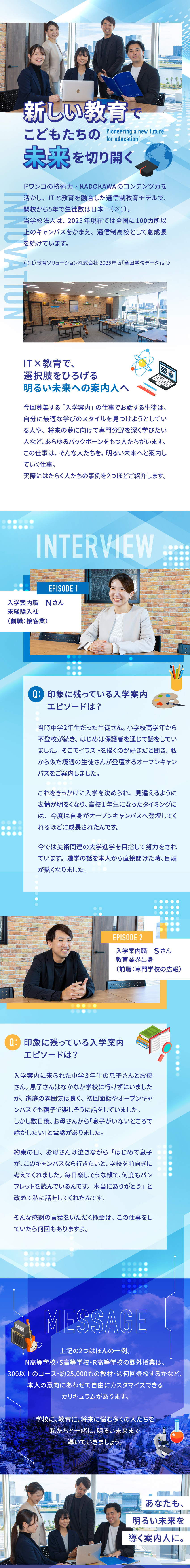 入学案内職(反響営業・広報)/日本一の生徒数を誇る通信制高校(※1)/年休123日/残業15h程度