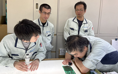 未経験でもご安心ください。プリント配線板とは何かを理解していただくための座学研修を用意しています。製品を実際に見ながら、先輩社員が説明を行い、2週間程度かけて基礎を教えます。その後、現場に入り、先輩の指導を受けながら、仕事の流れや進め方を覚えていってください。ある程度わかったら、できる業務から徐々にお任せしていきます。