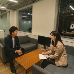 入社して間もない頃から、クライアントの打ち合わせに参加し、意見を出す機会を与えてもらえました。自分のアイデアでもきちんと耳を傾けてもらえるので、挑戦しやすい環境です!