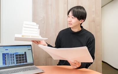 図面を描いたり、模型を作ったりしながら、建物の設計を進めていきます。