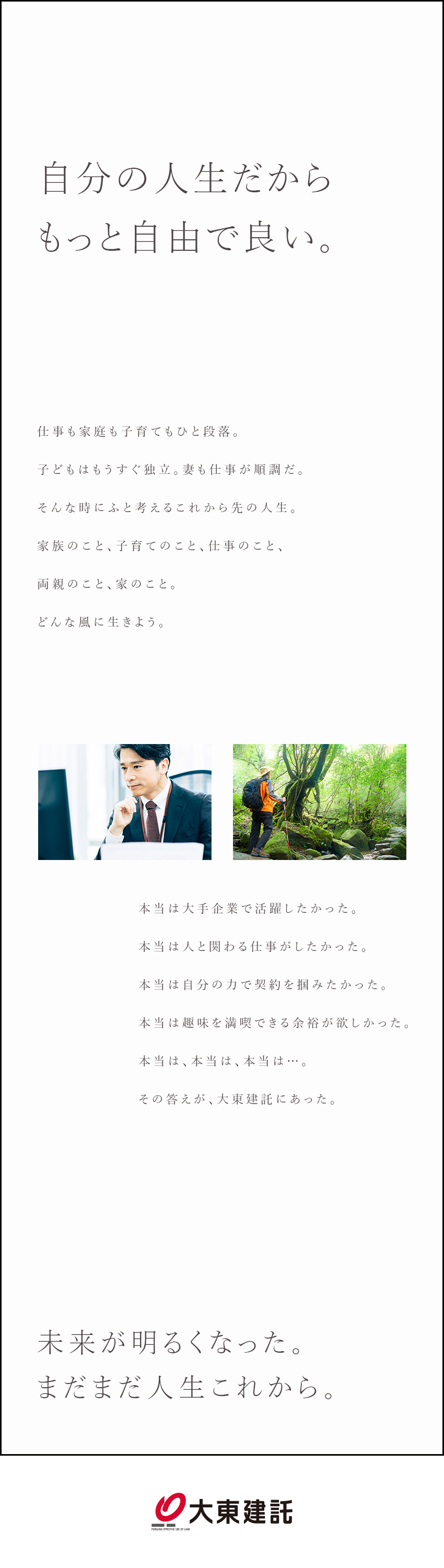 土地オーナー様とそのご家族の大切な資産を任せていただく責任と誇りが、大東建託の営業職のやりがいです。