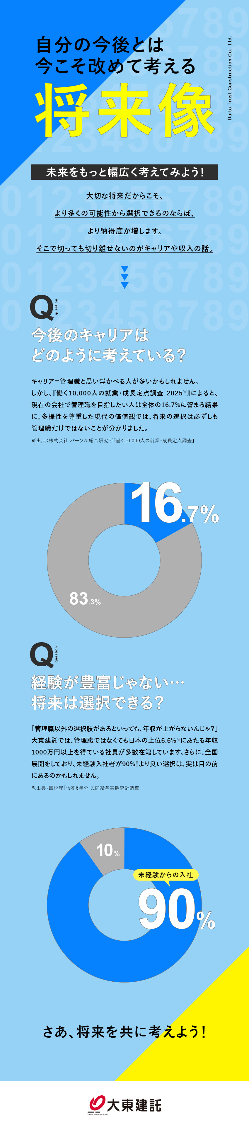 元々、歩合の仕事にしか興味がありませんでした。さぼってる人と頑張ってる人が同じ給料なんて、納得いかないじゃないですか。やればやった分だけ稼ぐことができること。それが大東建託に入社した一番の理由です。