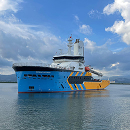 洋上風力発電所の建設などのオフショア事業に投入されている新鋭のCSOV船。水素燃料の使用も可能