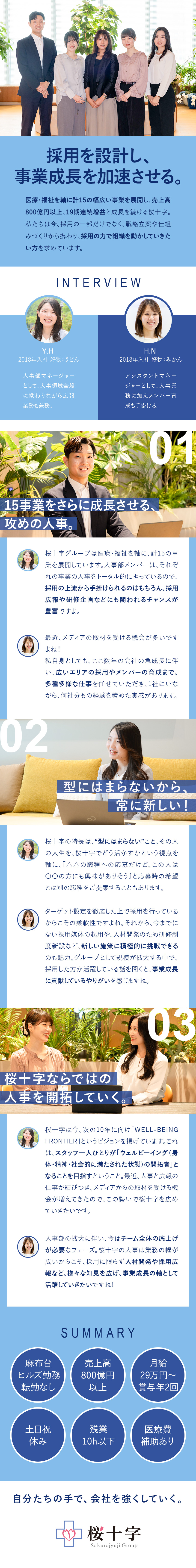 桜十字の人事は、グループ各社の採用も担うため、会社や事業体ごとに異なる採用課題に向き合えるやりがいがあります。