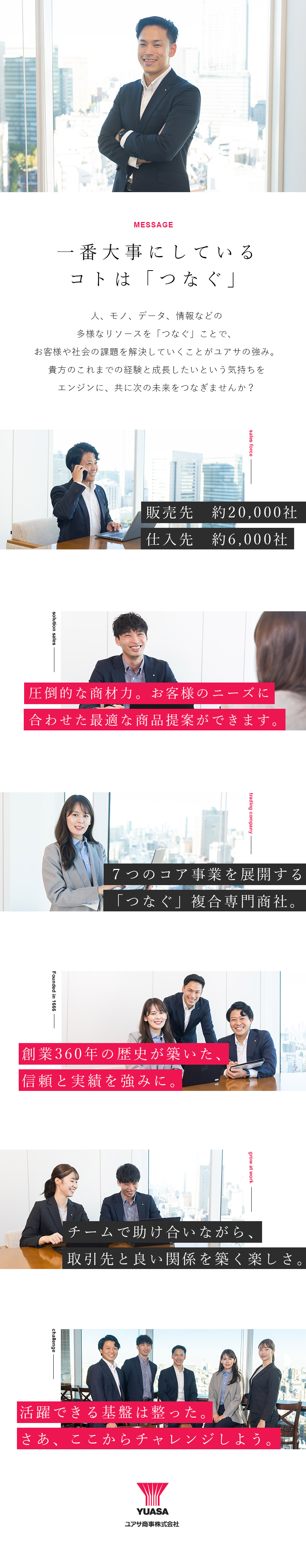 現在では、国内外に拠点を持ち、多角的な事業を展開するグローバルな「つなぐ」複合専門商社へと成長しています。