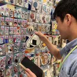 当社が扱うのは、ステッカーをはじめ、人気アニメとのコラボ商品や、オリジナル商品の缶バッジ、トートバッグなどの小物雑貨。企画から製造、販売まで一貫して手がけています。